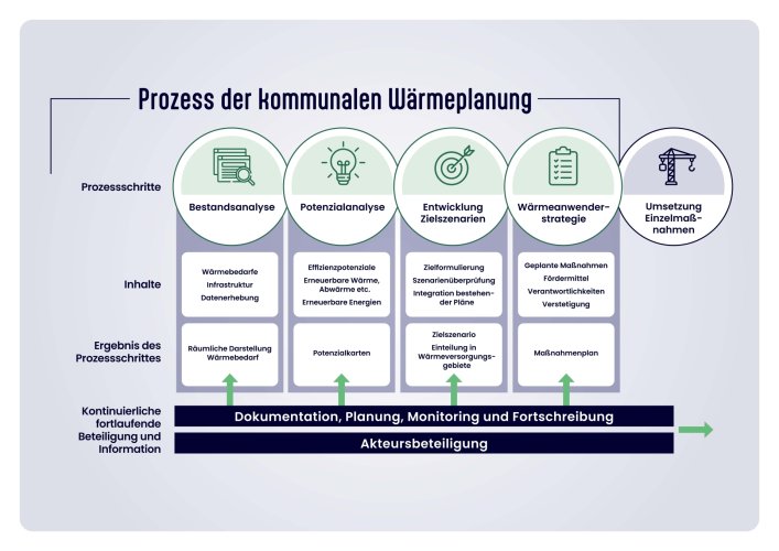 Die kommunale Wärmeplanung besteht aus mehreren Schritten: