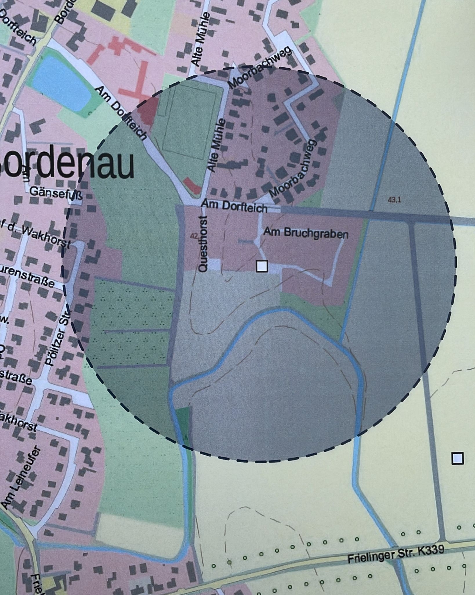 Im Rahmen von Erdarbeiten wurde in Bordenau eine Flakgranate gefunden, die nach Bewertung des Kampfmittelbeseitigungsdienstes noch heute kontrolliert gesprengt werden muss. Die Granate befindet sich in Bordenau südlich der Örtlichkeit „Am Dorfteich/Ecke Moorbachweg“.