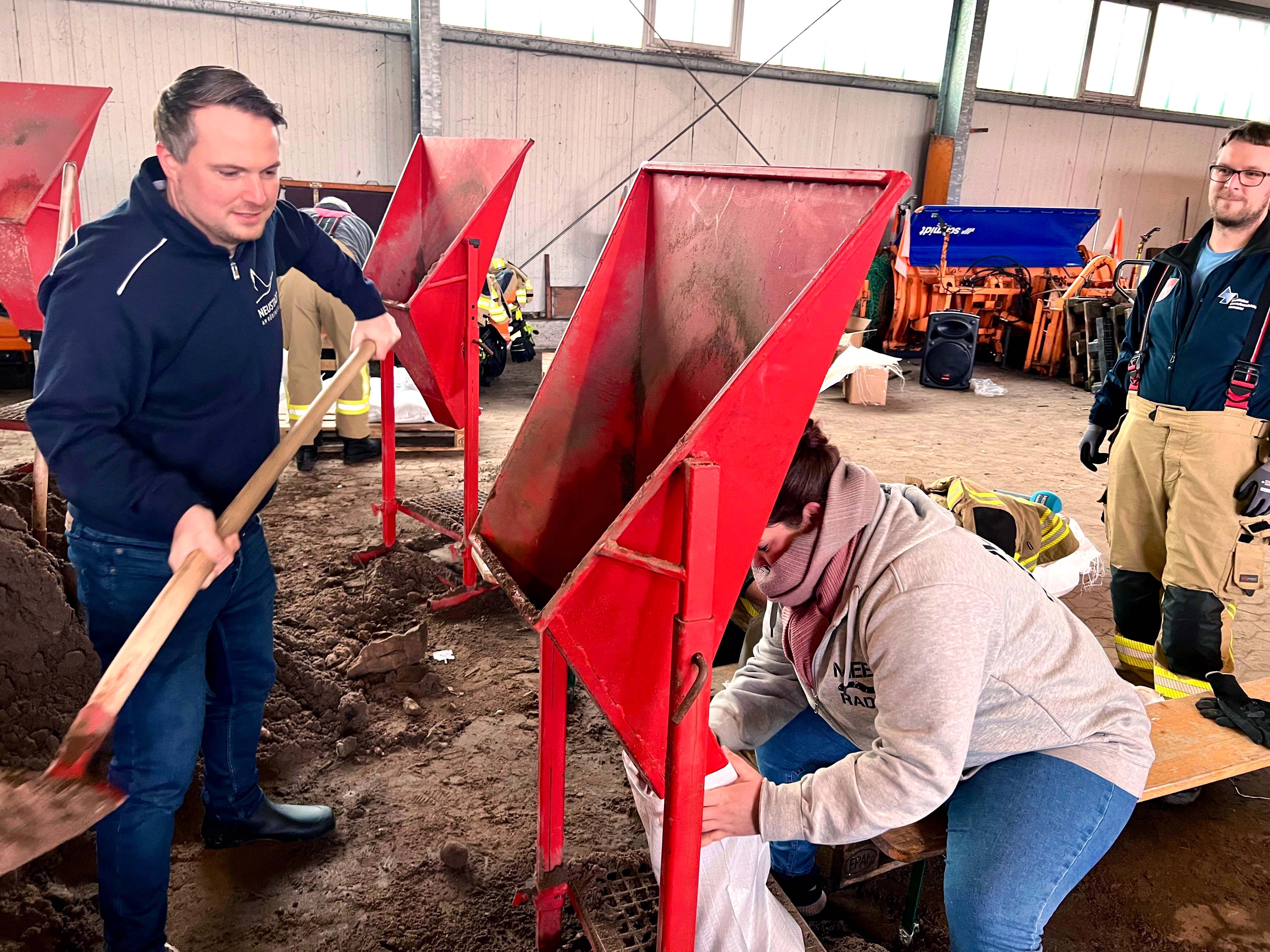 Nahaufnahmke der Flagge mit dem Stadtwappen Hintergrund blau-weiß