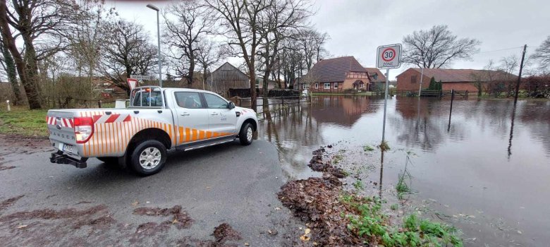 Allerdings sind mittlerweile weitere städtische Straßen überflutet. Die Straße Zum Bodenkamp in Empede (siehe Foto) sowie die Enge Straße und die St. Osdag-Straße in Mandelsloh werden vom städtischen Bauhof gesperrt.