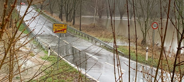 Die Leine-Querung Basse-Mariensee wird aufgrund von Hochwasser für den gesamten Verkehr gesperrt. Der Leine-Pegel steht aktuell bei 5,07 Metern.