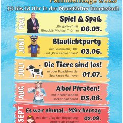 gewinnen gibt es am 06. Mai viele tolle Preise von Präsentkörben über Gutscheine. Gesponsort wurde diese von Neustädter Unternehmen“, berichtet Citymanagerin Jana Schadwinkel. Außerdem mit dabei: Seifenblasenkünstler Roger macht Blau, Torwandschießen mit dem FC Wacker Neustadt, Kinderschminken, eine Hüpfburg u.v.m. Getränke, Imbiss und Crêpes finden sich ebenfalls vor Ort.