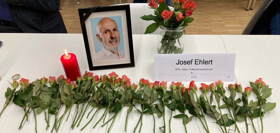 In der Ratssitzung am 15. Februar 2024 legten die Mitglieder des Stadtrats und Mitarbeiter der Verwaltung jeweils eine Rose an dem Platz nieder, der mit einem Foto des Verstorbenen und einer Kerze geschmückt war.