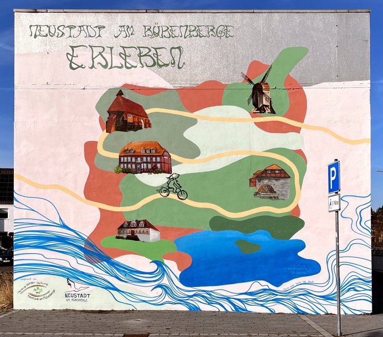 Die beiden Graffiti zusammen mit den beiden Bildern auf Alu-Dibond-Platten aus dem Gymnasium Neustadt a. Rbge., deren Themen vom Stadtschülerrat vorgegeben wurden, soll sich das Gebäude langsam in eine stetig wachsende Kunstgalerie verwandeln.