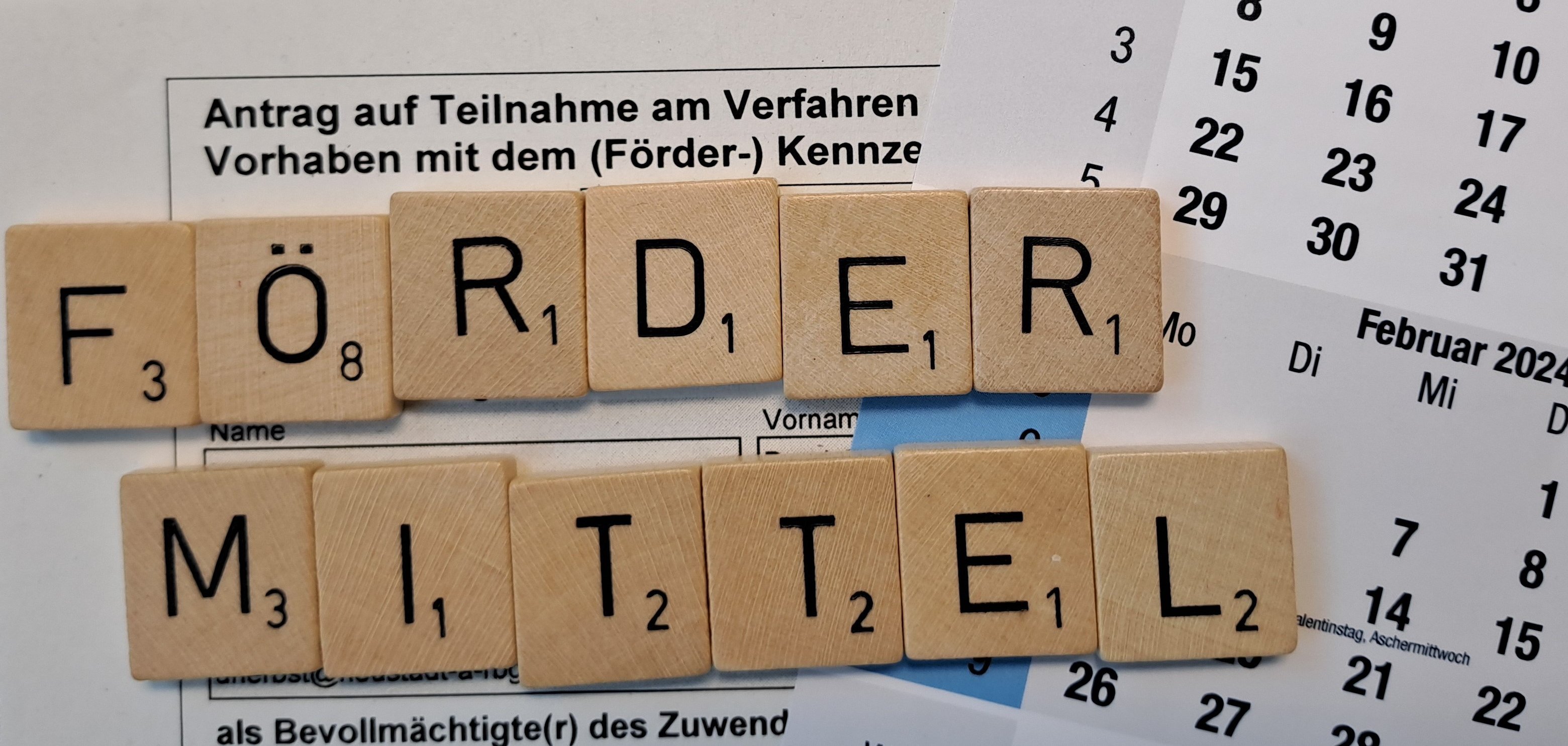 Nahaufnahmke der Flagge mit dem Stadtwappen Hintergrund blau-weiß