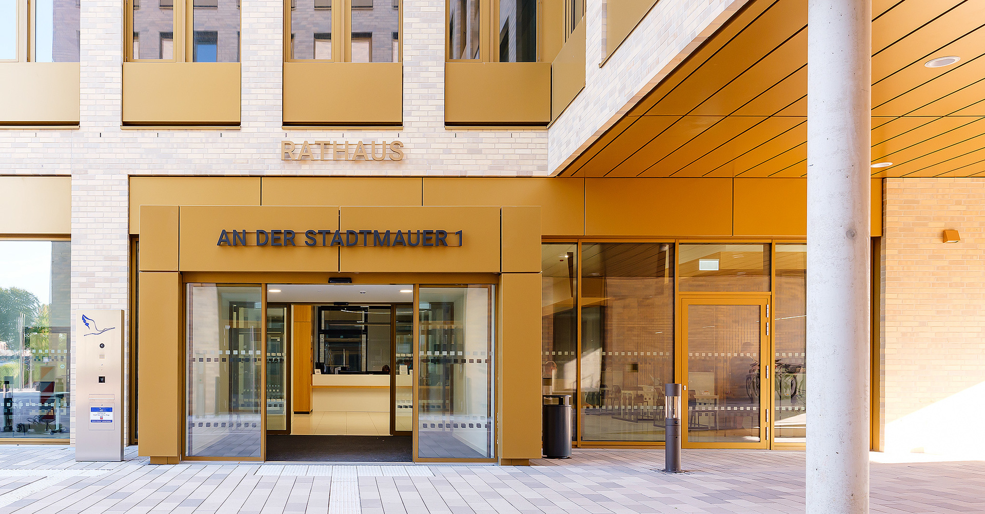 Nahaufnahmke der Flagge mit dem Stadtwappen Hintergrund blau-weiß