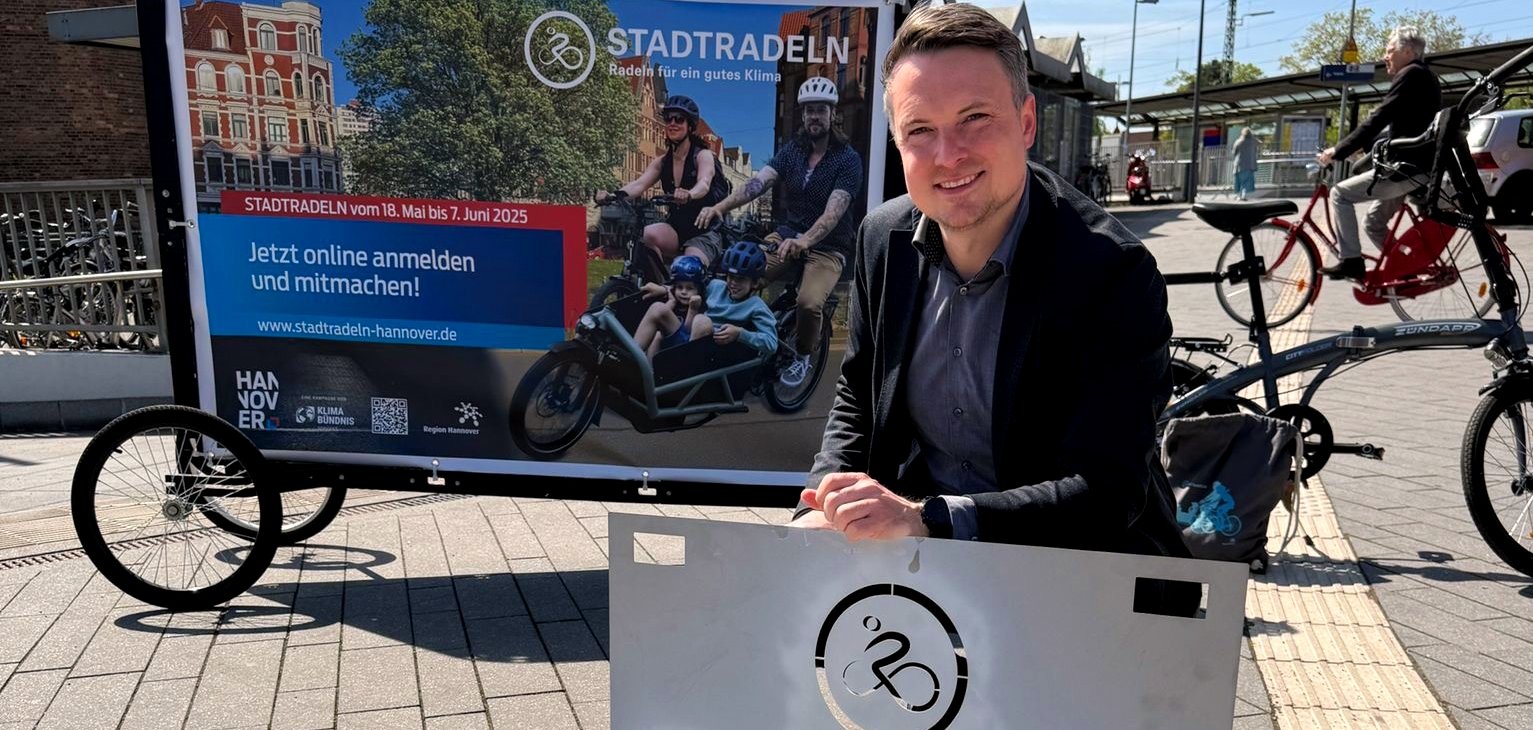 Nahaufnahmke der Flagge mit dem Stadtwappen Hintergrund blau-weiß