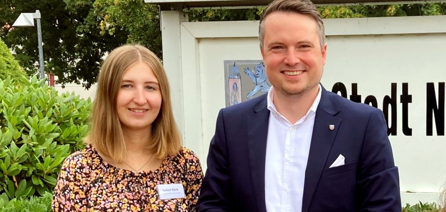 „Ich habe mich bei der Stadt Neustadt beworben, da ich auf der Suche nach einer neu-en Herausforderung war und in der Stadt Neustadt einen vielfältigen Arbeitgeber sehe“, sagt Isabell Räck, die am 1. August 2022 als Stadtinspektoranwärterin bei Neustadts Stadtverwaltung angefangen hat. An ihrem ersten Arbeitstag wurde sie von Bürgermeister Dominic Herbst im Rathaus begrüßt.