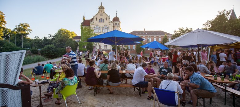 Stephan Iseke sorgt erneut für Urlaubsstimmung mit Sand, Liegestühle und kühlen Drinks am Fuße des Schloss Landestrost. Für ein leckeres Speisenangebot sorgt in diesem Jahr Thomas Iseke mit Angeboten aus der Tex-Mex-Küche und Loaded Fries.