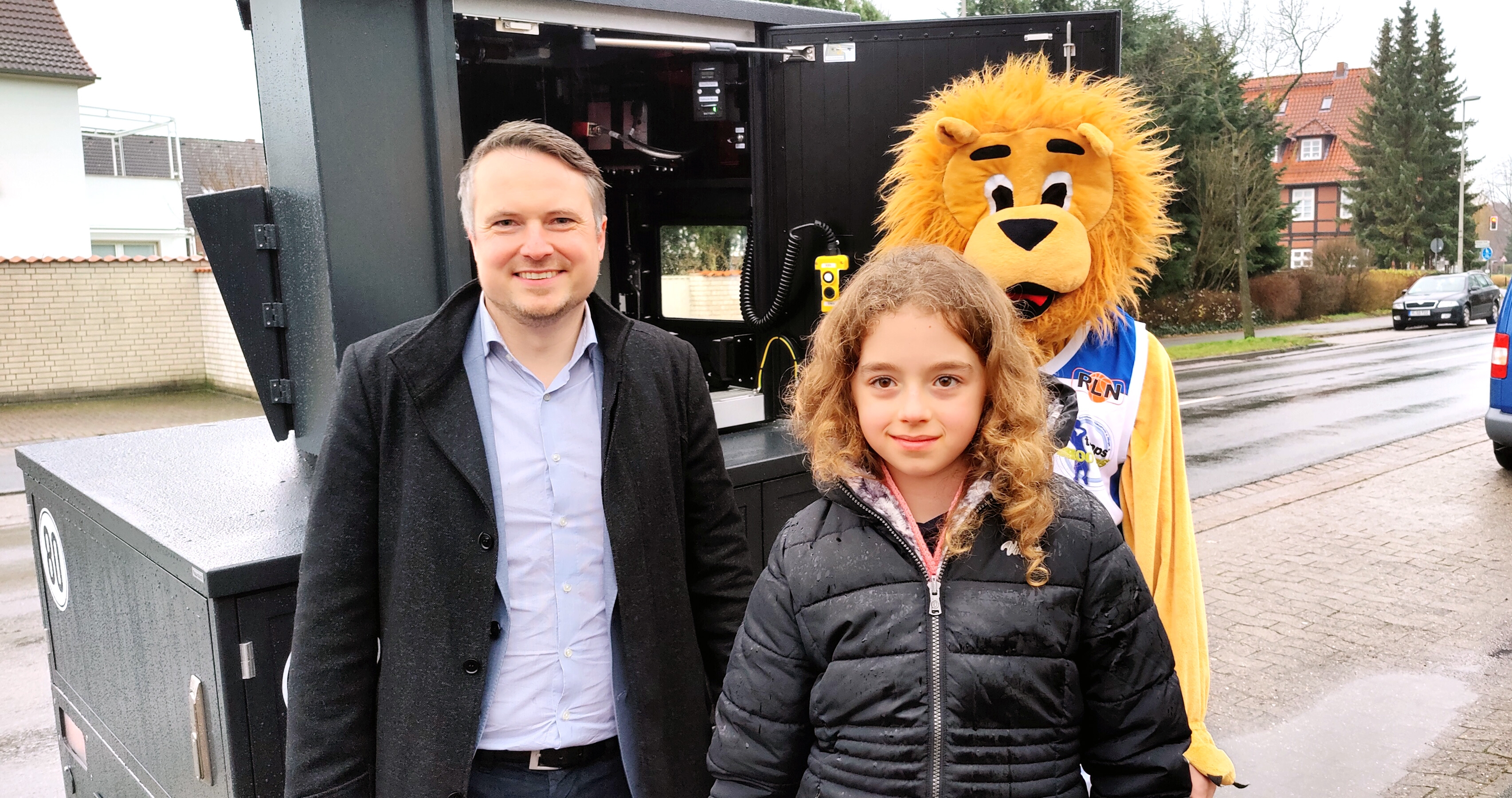 Nahaufnahmke der Flagge mit dem Stadtwappen Hintergrund blau-weiß