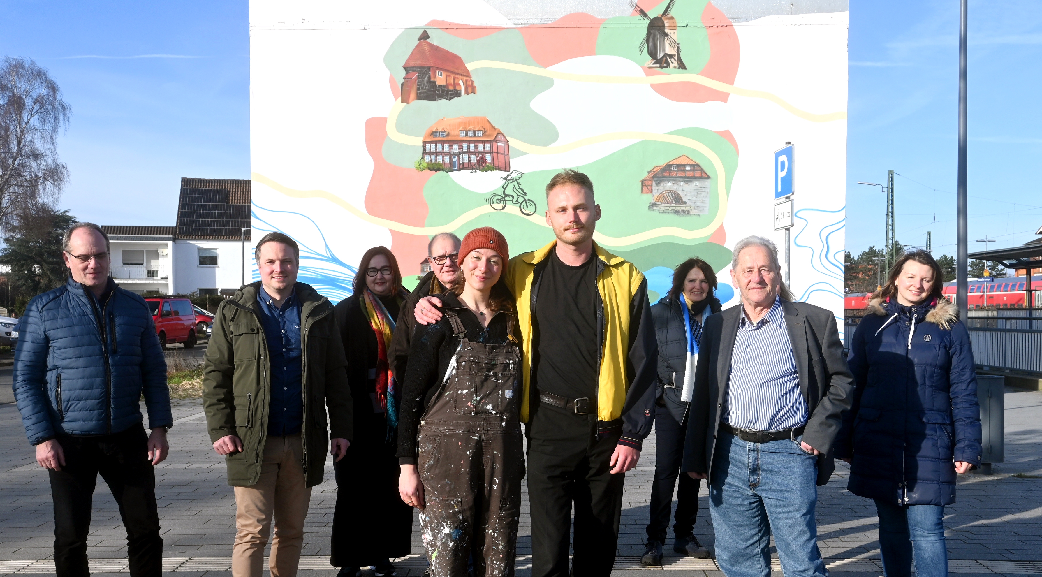 Nahaufnahmke der Flagge mit dem Stadtwappen Hintergrund blau-weiß