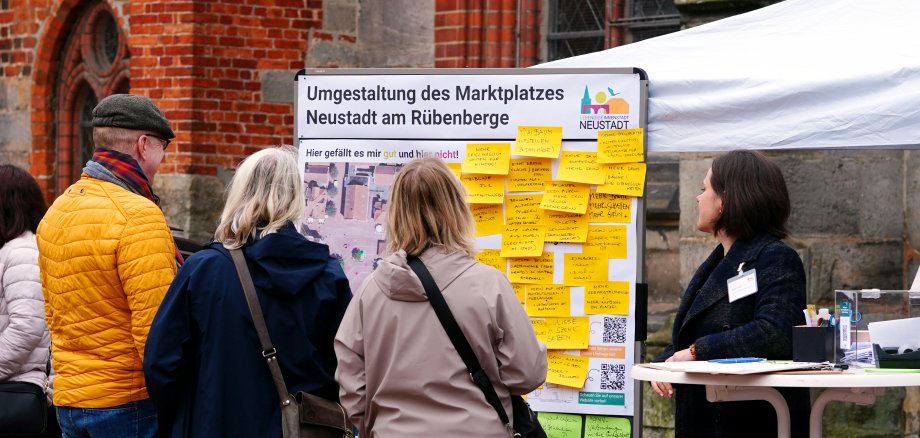 Nachdem Besucher des Goldenen Sonntags am 20. Oktober bereits erste Wünsche zur zukünftigen Gestaltung des Marktplatzes geäußert haben, bietet die Stadtverwaltung nun eine weitere Möglichkeit zur Beteiligung: Bis Mitte Dezember können Vorschläge über einen Online-Fragebogen unter www.neustadt-a-rbge.de/innenstadtsanierung abgegeben werden.