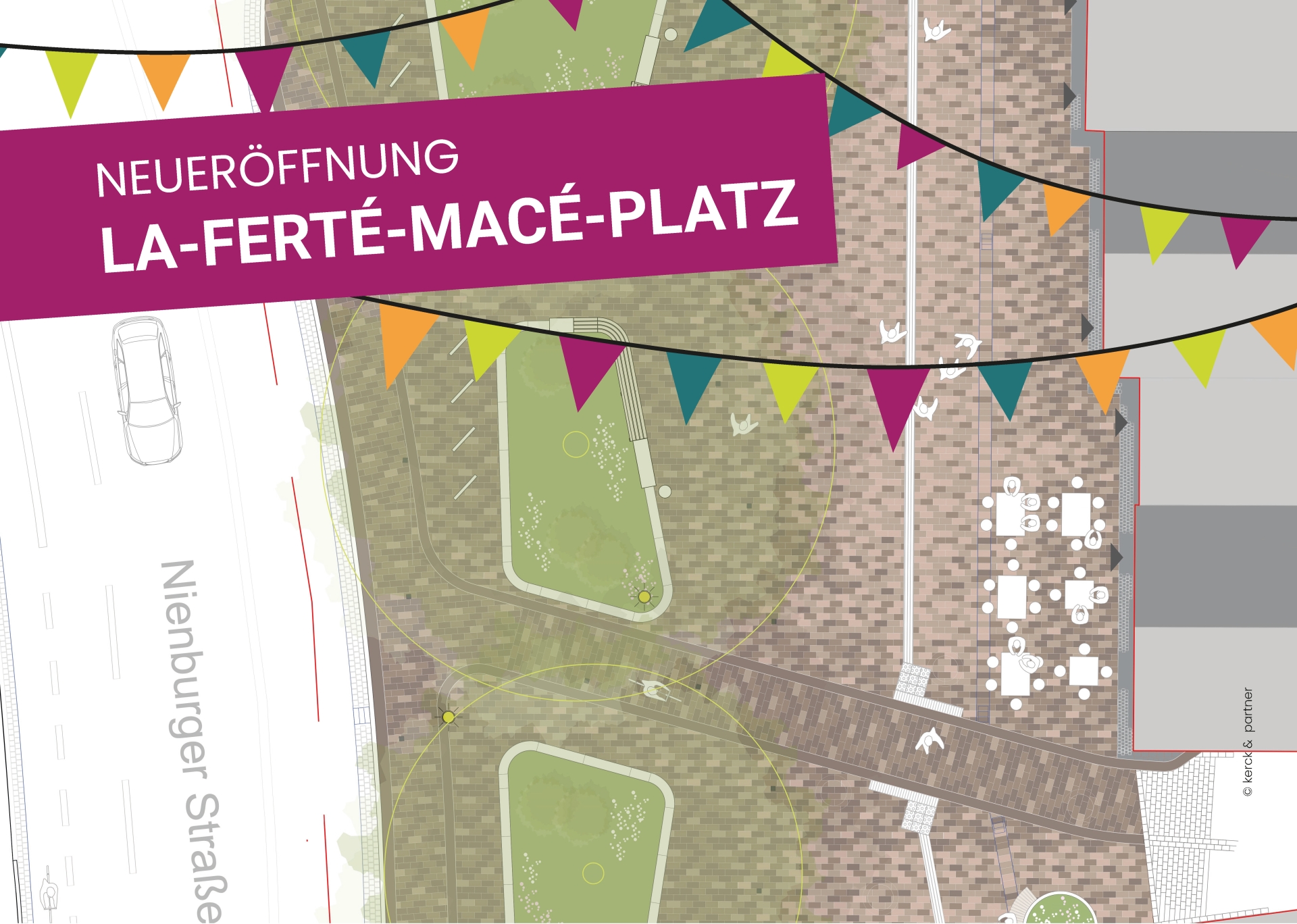 Nahaufnahmke der Flagge mit dem Stadtwappen Hintergrund blau-weiß