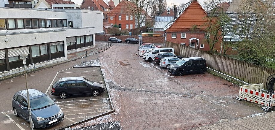 Die Arbeiten sollen am kommenden Montag, 13. Januar, beginnen und dauern voraussichtlich drei Monate. Das bis an das Sparkassengebäude heranreichende Areal wird umgestaltet. Die Parkplätze werden von der Süd- auf die Nordseite in Richtung Sparkassengebäude verlegt, außerdem entsteht ein Wendehammer. Es werden auch kleinere Grünflächen angelegt.