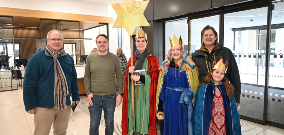 Außerdem segneten sie das Amtsgebäude kraft eines Aufklebers mit der Aufschrift „20*C+M+B+26“: Die Anfangsbuchstaben der drei Weisen aus dem Morgenland („C+M+B“) stehen hierbei für „Christus mansionem benedicat“ – „Christus segne dieses Haus“ im neuen Jahr 2026.